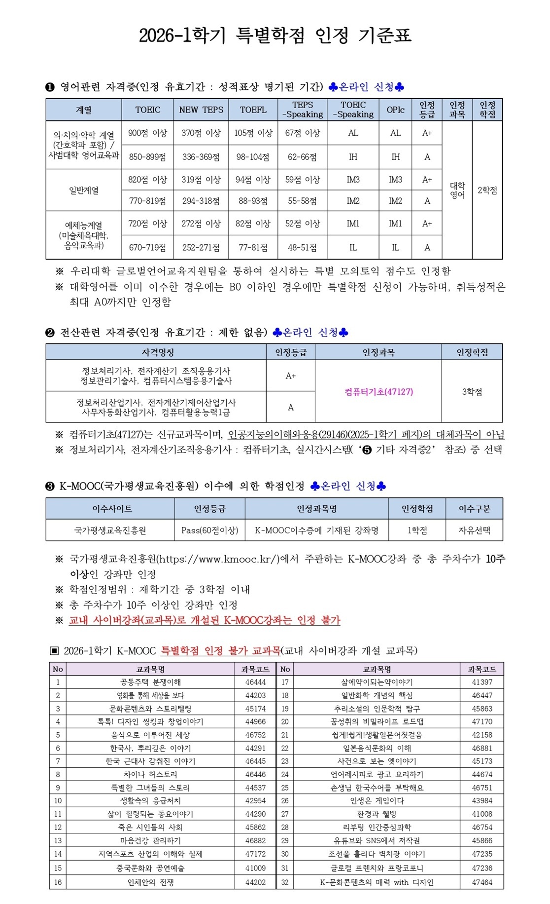 - 본교 특별TOEIC 성적증명 출력 : https://ipexam.toeic.co.kr/csu