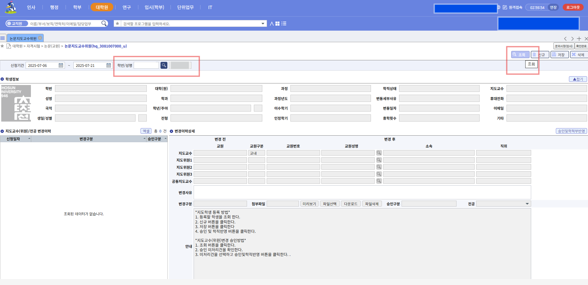 3. 논문지도교수 입력방법