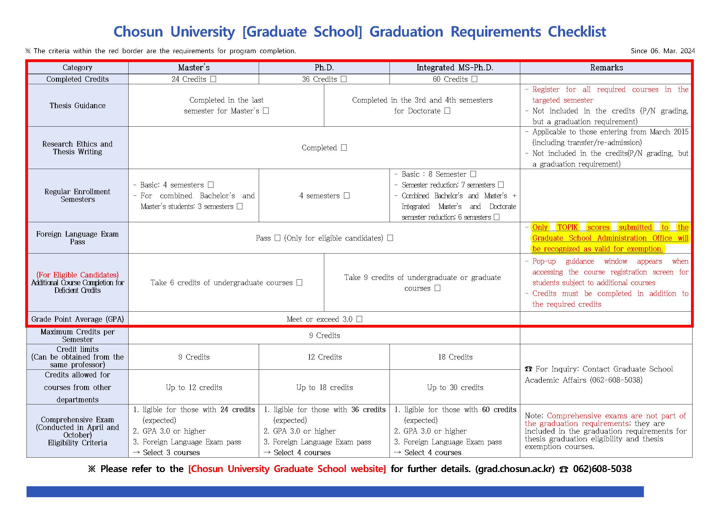 Graduate School Completion Requirements Checklist (Updated: March 1, 2026)